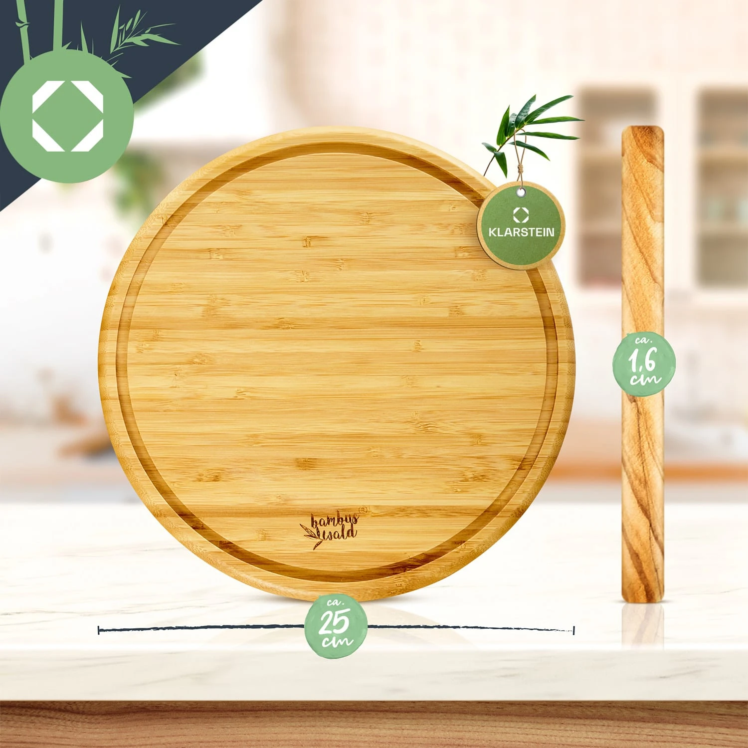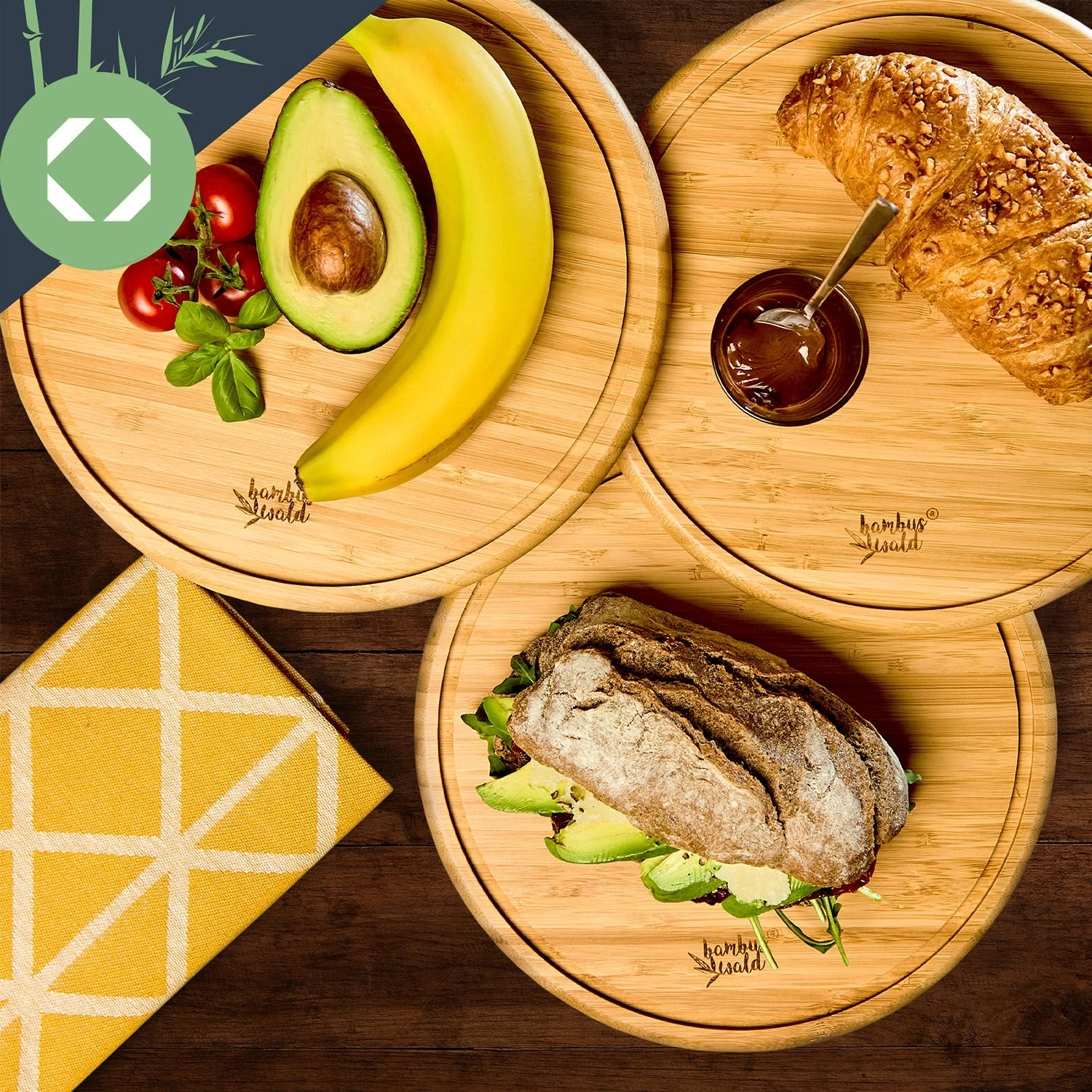 3er-Set Bambus-Frühstücksbrett Rund 25 X 1,6 X Cm (ØxH) Pflegeleicht