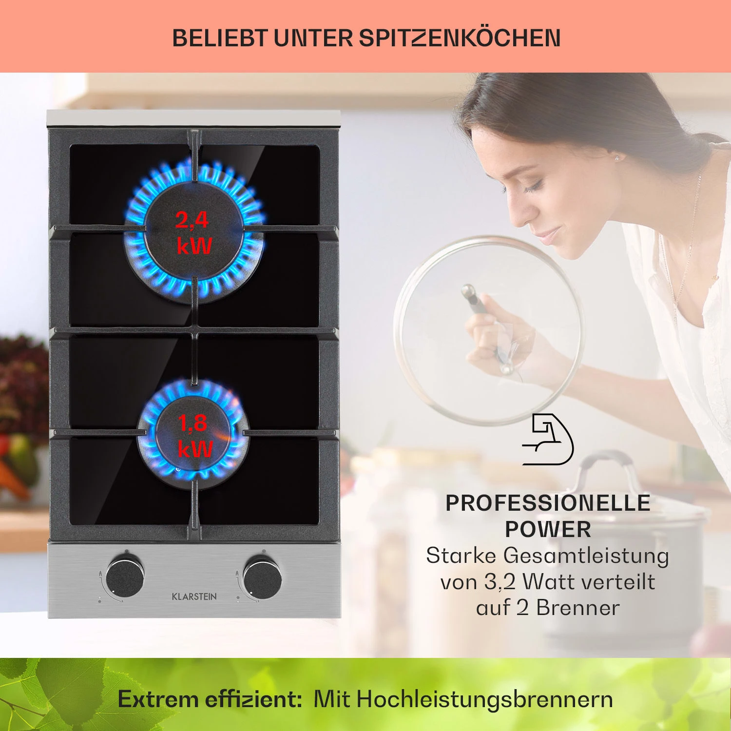 Alchemist Domino Gaskochfeld 2-flammig Aluminium-Brenner Glaskeramik