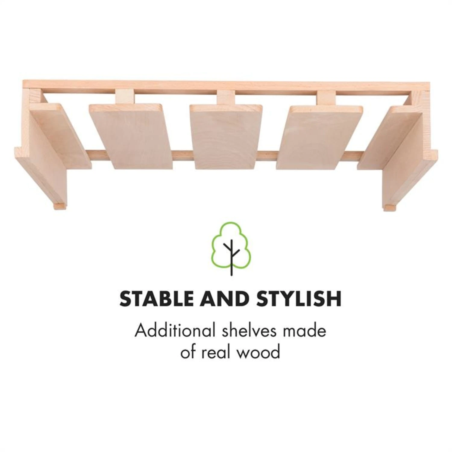 Immer perfekt temperiert: Kaum etwas ist wichtiger, als die richtige Trinktemperatur des Weins. Damit diese nicht beim Dekantieren in warme Weingläser verloren geht, empfiehlt es sich, die Gläser selbst ebenfalls zu kühlen – so steht dem perfekten Weingenuss nichts im Wege. Aus diesem Grund ist beim Klarstein Barossa 102 Duo Weinglas-Regal-Set eben dieser Regalboden aus Echtholz direkt enthalten. Einfach in den Weinkühlschrank einsetzen und schon können auf vier Schienen Weiß- oder Rotweingläser direkt mit dem Wein zusammen aufbewahrt werden.