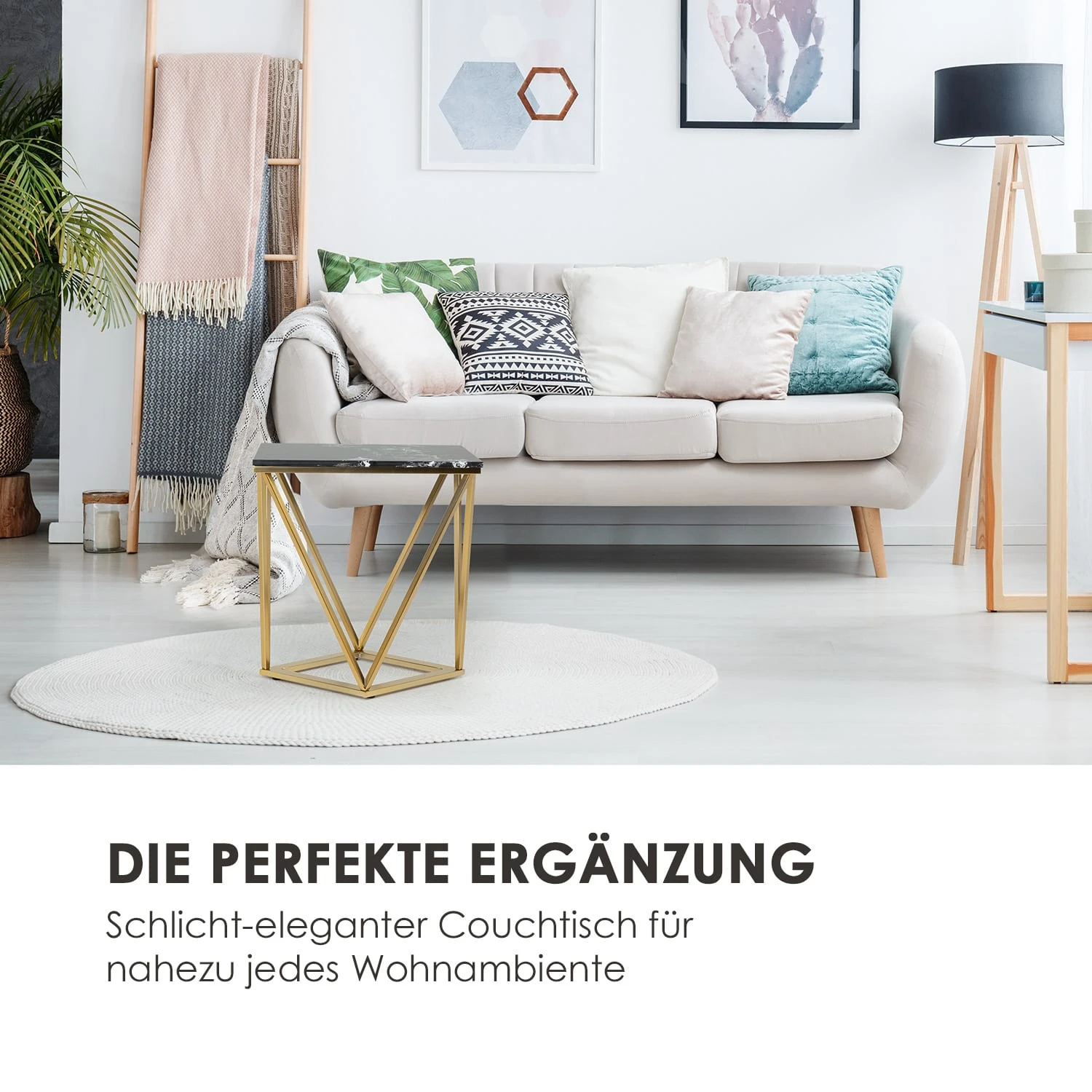 Zeitlose Eleganz ist der Anspruch des Besoa Black Onyx II Beistelltisches. Seine glatt polierte Tischplatte aus schwarzem Marmor mit weißer Bänderung erweckt den Luxus des Sonnenkönigs bei Ihnen zuhause. Die edle Tischplatte wird durch das goldfarbene Metallgestell zusätzlich unterstrichen. Dabei bleibt der Couchtisch in seiner Formensprache modern und schnörkellos, sodass er sich perfekt in Ihr Wohnambiente einfügt. Mit seinen praktischen Maßen von 50 x 55 x 35 cm eignet sich der Black Onyx II ideal als Couch- oder Beistelltisch.