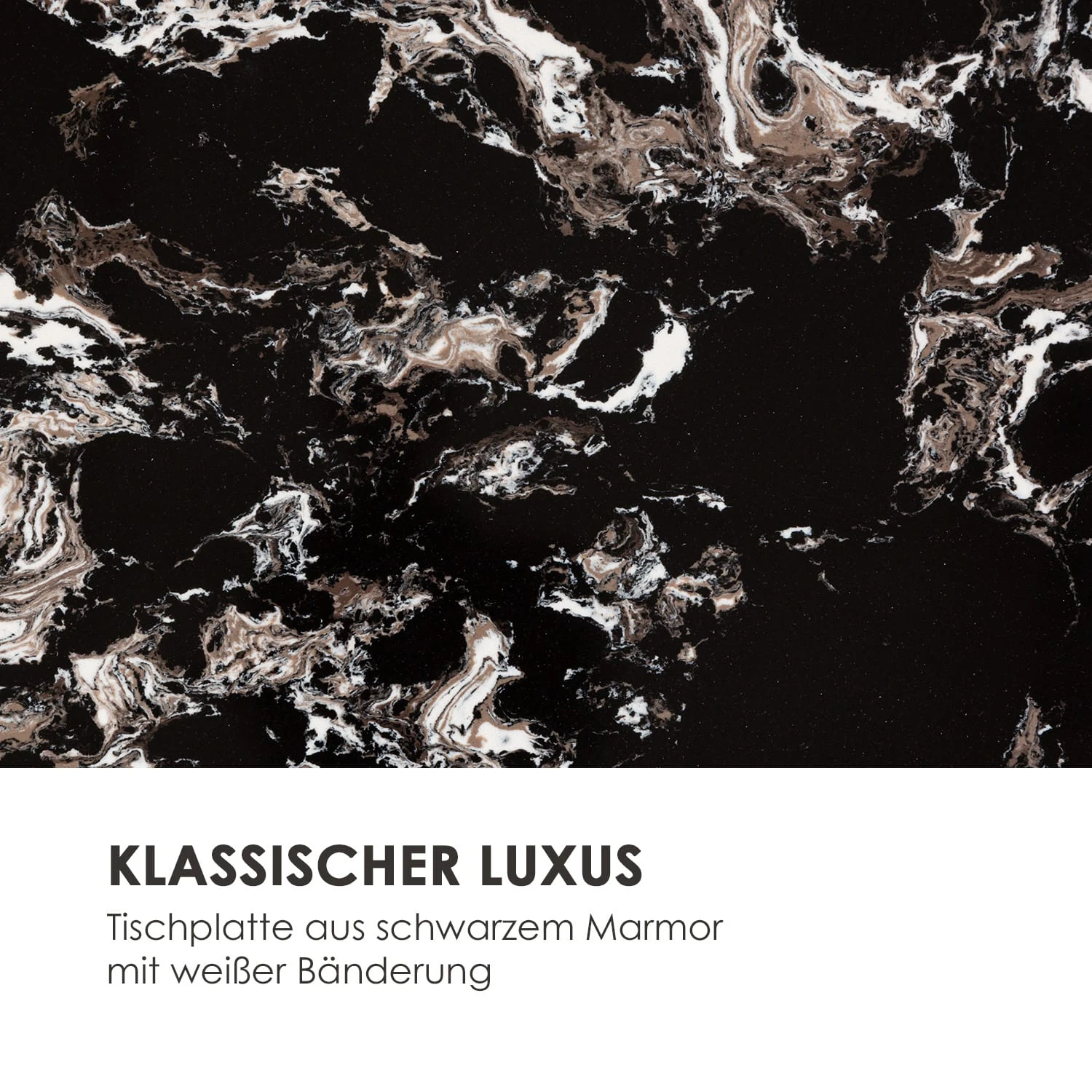 - Tischplatte: schwarzer Marmor