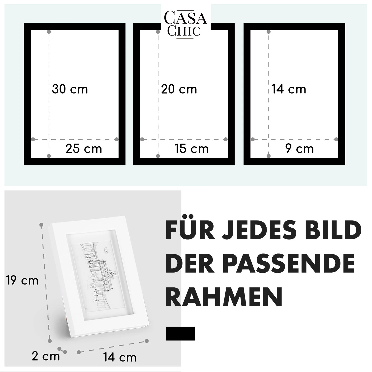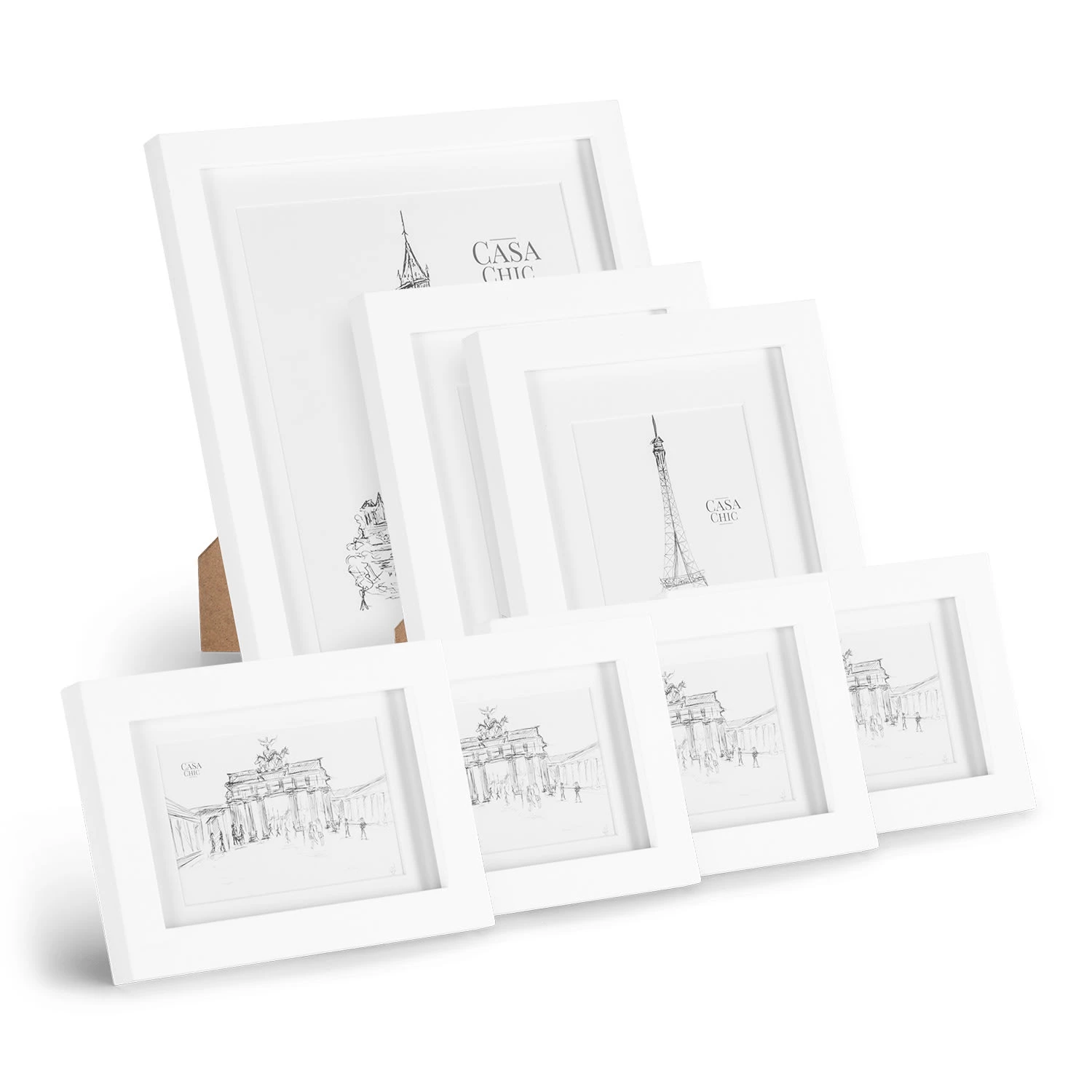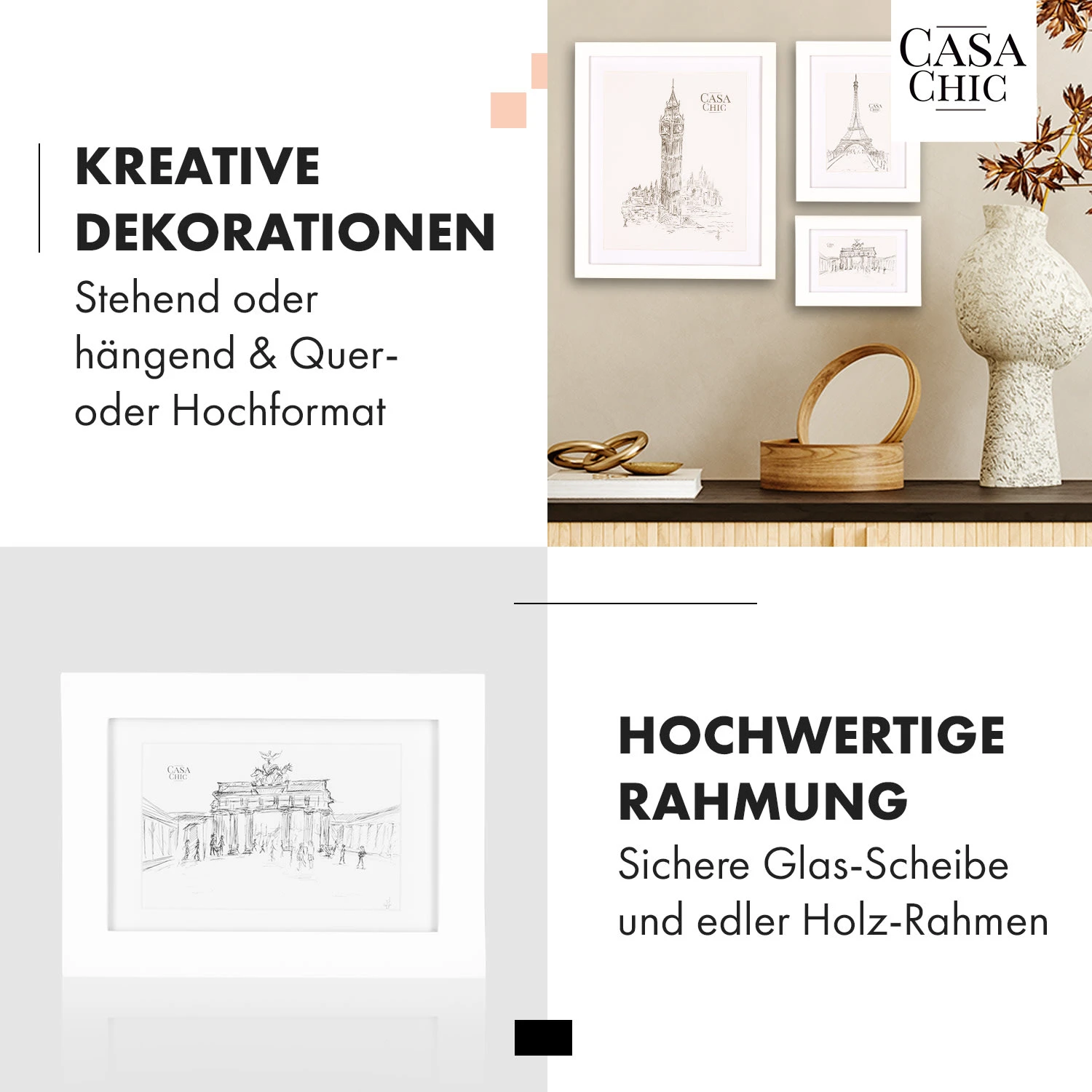 Mit den schlichten Chalcot Echtholz-Bilderrahmen von Casa Chic by blumfeldt kommen deine Fotos und Bilder sowohl im Hoch- als auch im Querformat ideal zur Geltung. Gestalte wunderschöne Wandcollagen, denn der Chalcot kommt direkt als passendes 7er-Set zu dir nach Hause. Die mitgelieferten Passepartouts überlassen dir die Wahl des passenden Bildausschnitts. Sein Rahmenprofil schenkt einen edlen Kontrast und die Frontscheibe aus Echtglas schützt vor Staub und Schmutz.