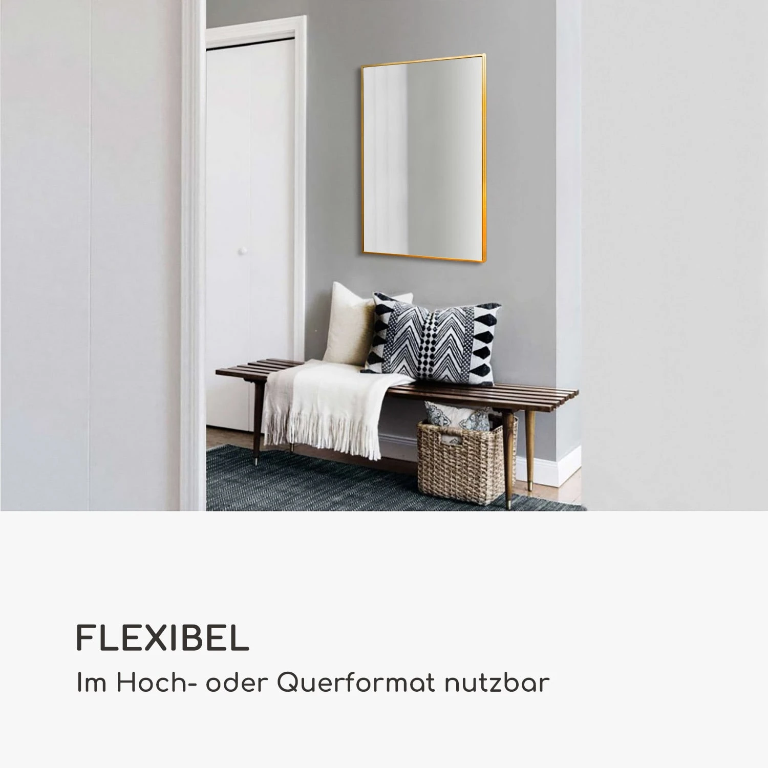Schlanker Metallrahmen für maximale Eleganz: der Croxley Wandspiegel von Casa Chic by blumfeldt.