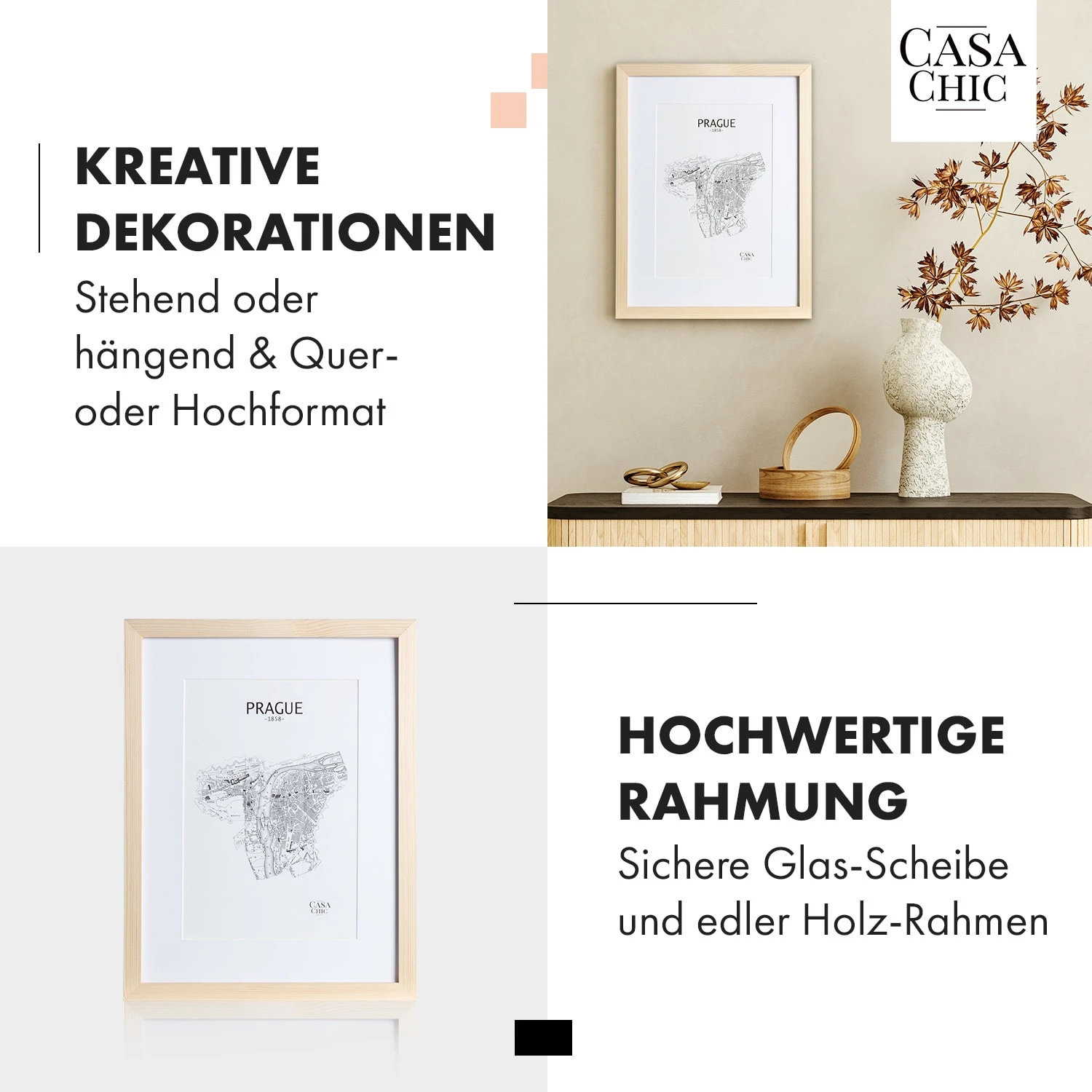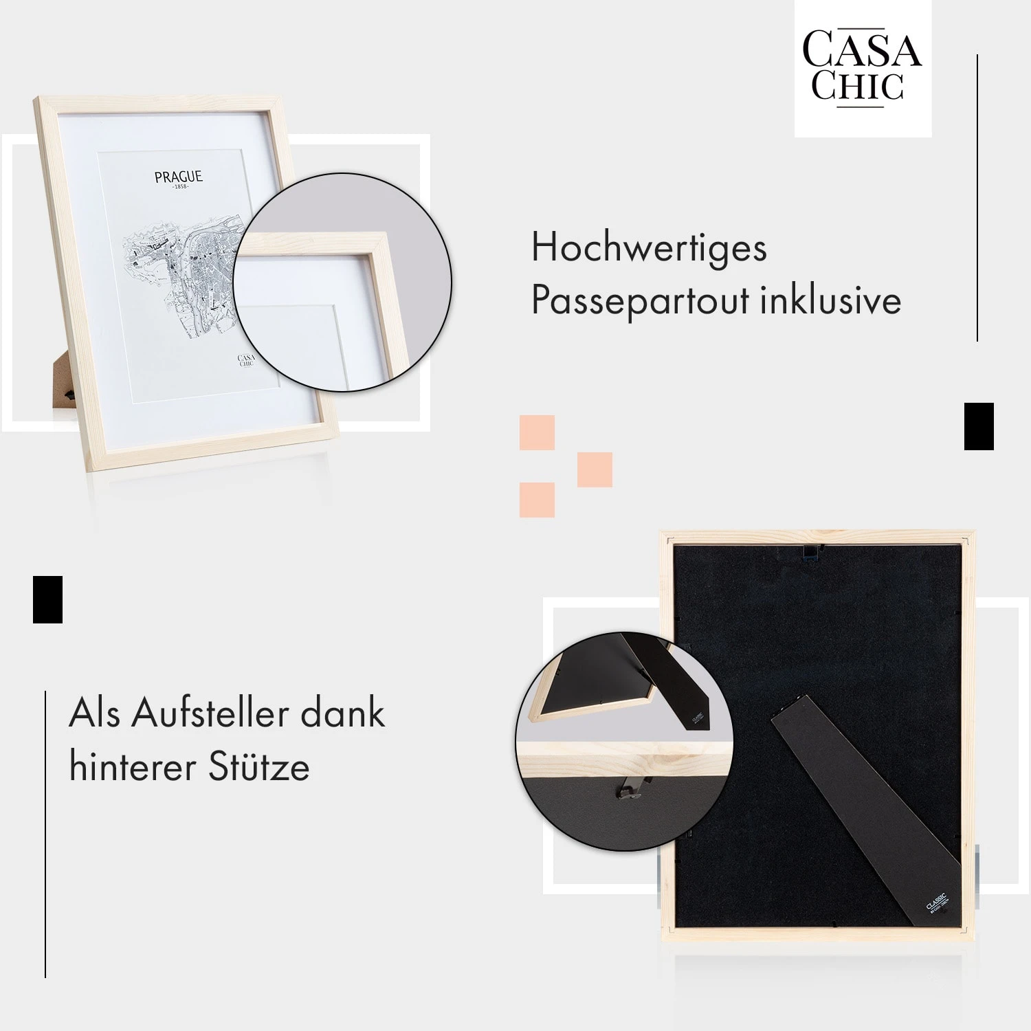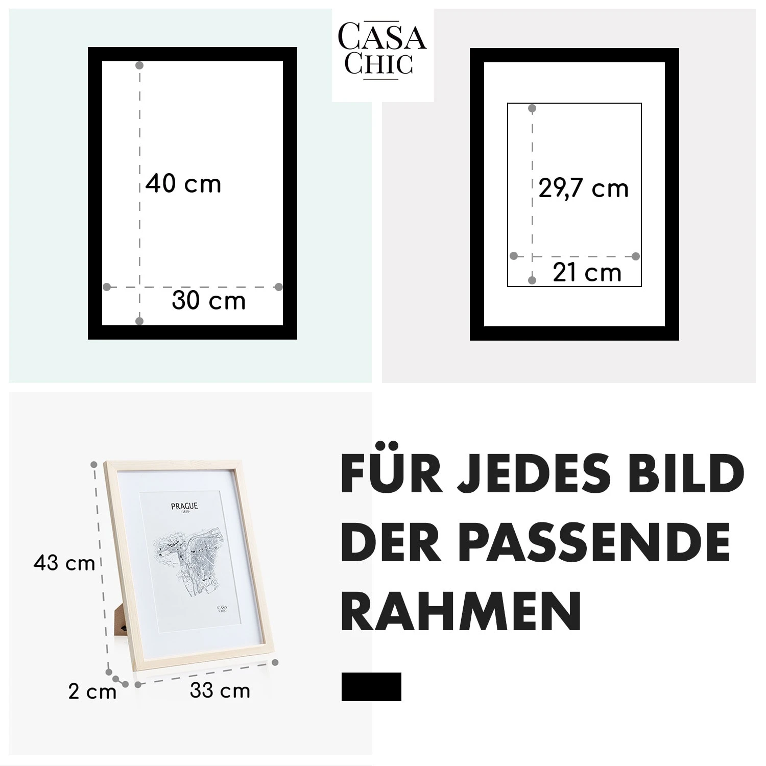 Mit dem schlichten Edinburgh Echtholz-Bilderrahmen von Casa Chic by blumfeldt kommen deine Fotos und Bilder sowohl im Hoch- als auch im Querformat ideal zur Geltung. Gestalte wunderschöne Wandcollagen oder arrangiere deine Lieblingsfotos auf dem Sideboard oder im Regal. Mit den Edinburgh Rahmen bist du flexibel. Das mitgelieferte Passepartout überlässt dir die Wahl des passenden Bildausschnitts. Sein breites Rahmenprofil schenkt einen edlen Kontrast und die Frontscheibe aus Plexiglas schützt vor Staub und Schmutz.