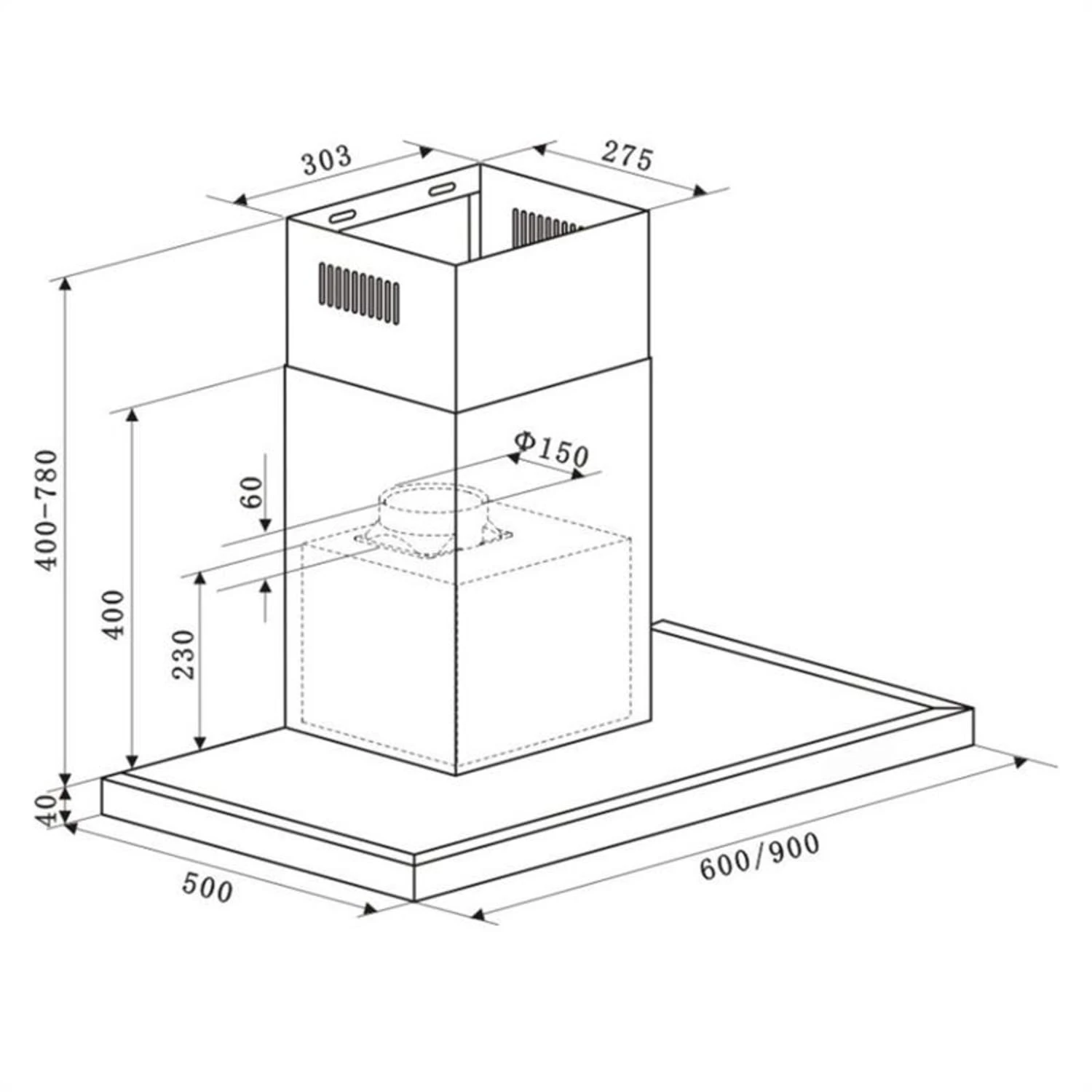 Limelight Dunstabzugshaube 90cm Wandhaube 600m³/h Schwarz