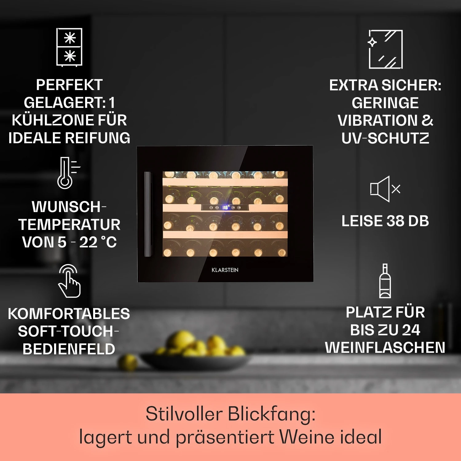 Vinsider 24 Built-In Uno Onyx Einbau-Weinkühlschrank 24 Flaschen 57 L